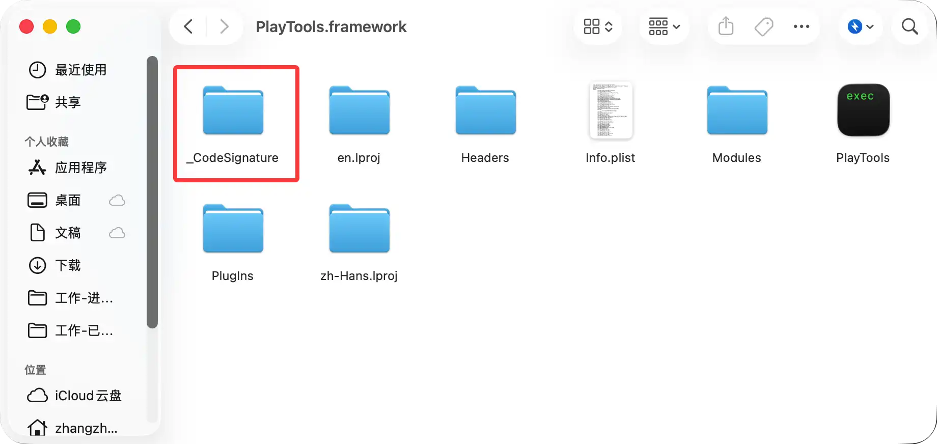 操作完成后检查是否有生成 _CodeSignature 文件夹。