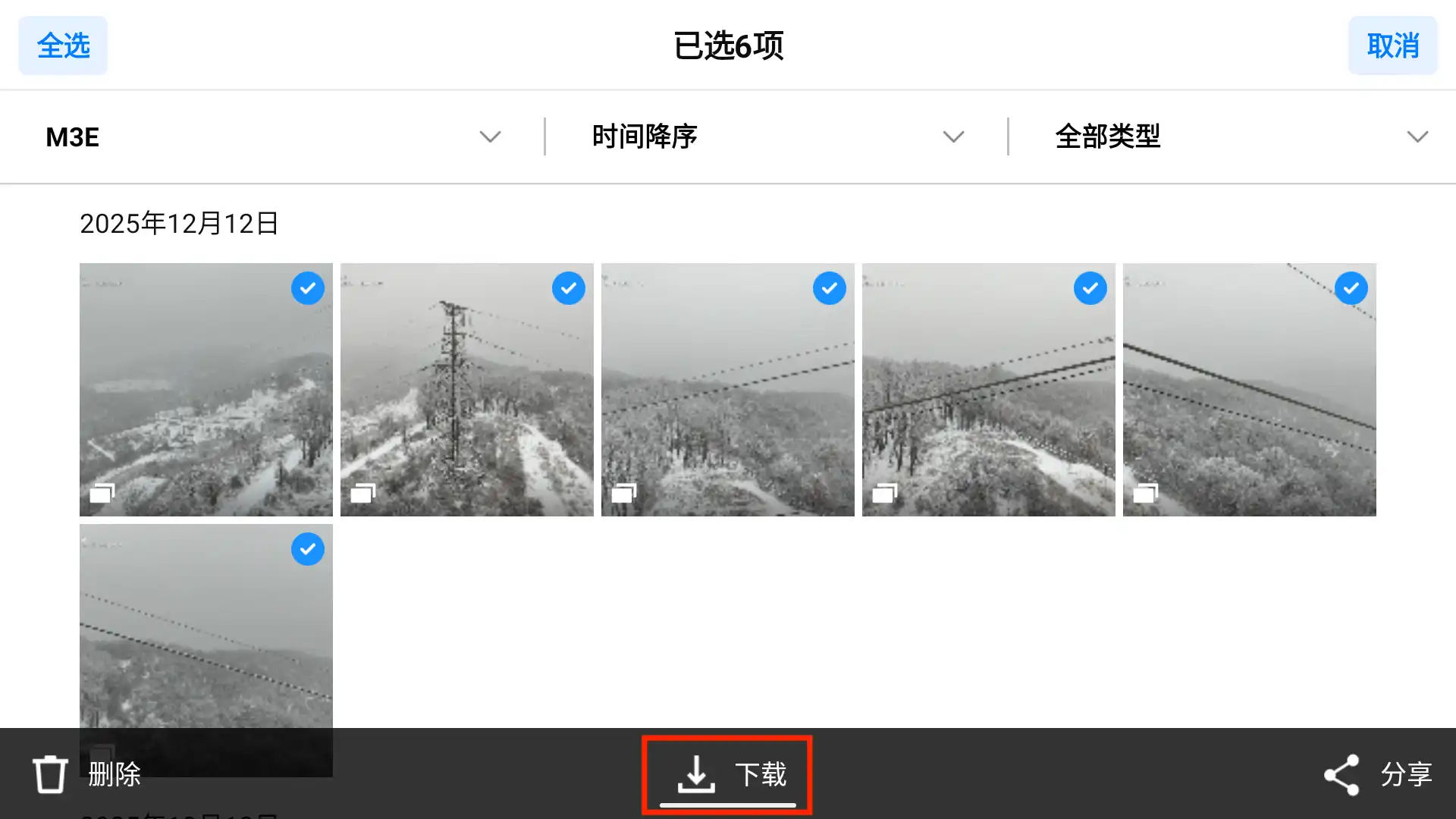 点击 下载 将图片从无人机下载至遥控器上,下载后无人机无需保持开机状态: