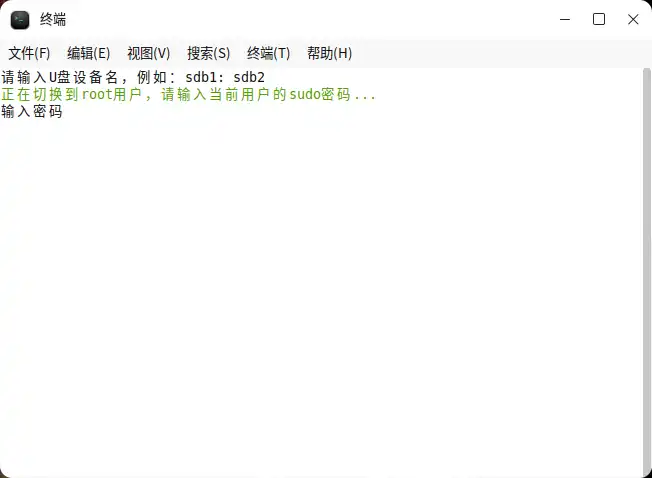 三、输入 root 用户密码,一般为电脑登录密码,输入后按回车: